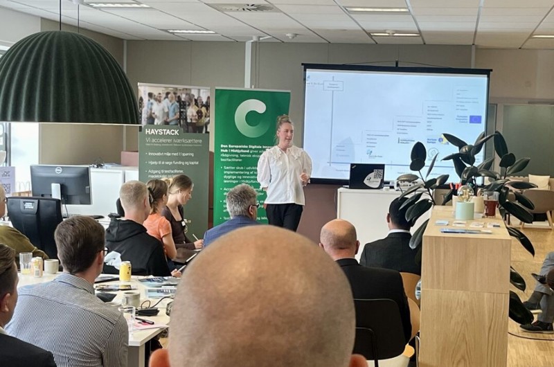 Udover en kort introduktion til TechCircle og inkubatormiljøet HAYSTACK, hvor eventet blev afholdt, bød Helle Vedel Friis og Elena Skytte fra Food & Bio Cluster Denmark velkommen med et par gode tips til soft funding for fødevare- og bioressourcevirksomheder:
